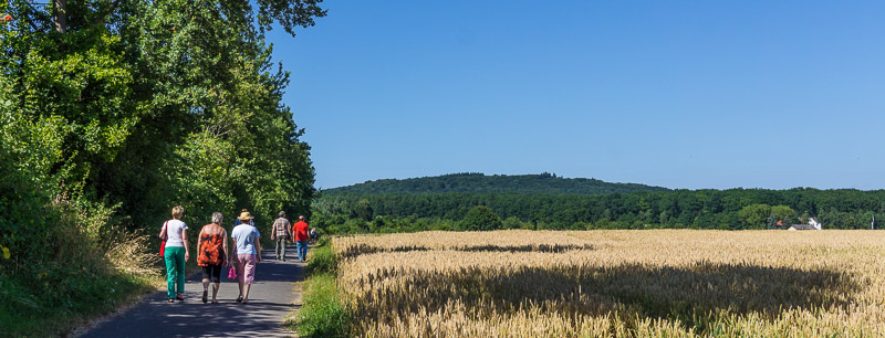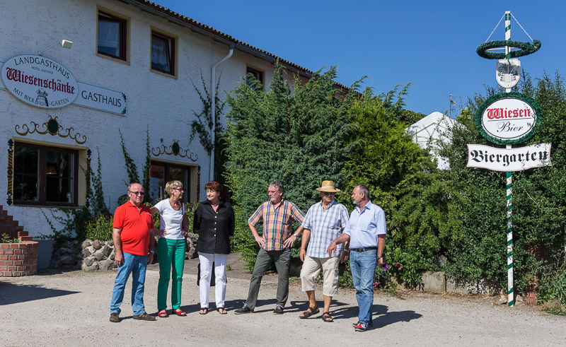 Wir sind vom Wiesecker Bürgerhaus durch die Wieseckauen zum Auenhof gelaufen. Das Essen war gut, die Schnitzel riesig, das Bier kühl und die Stimmung Super.