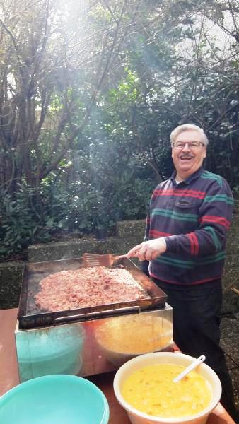 Alle Jahre wieder.... also schon traditionell am Karfreitag Osterbrunch bei Karl-Walter Voss. Diesmal durch Krankheit und Urlaub bedingt, in etwas kleinerer Besetzung, konnten wir wieder ein paar schöne Stunden zusammen verbringen. Besten Dank an Karl-Walter für die Organisation und an Norbert für die schmackhafte Zubereitung der Eier.